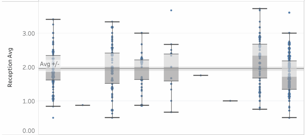 Contrary to expectation, the kind of reception data needed for better storytelling isn’t reception averages, at least not in the near future. Gathering that kind of data would be much more difficult because it would require many more people with specialized knowledge of the game and it would require universally accepted standards for receptions. Both of these things are highly unlikely to happen any time soon, but that doesn’t mean there aren’t stories to be told about passing.